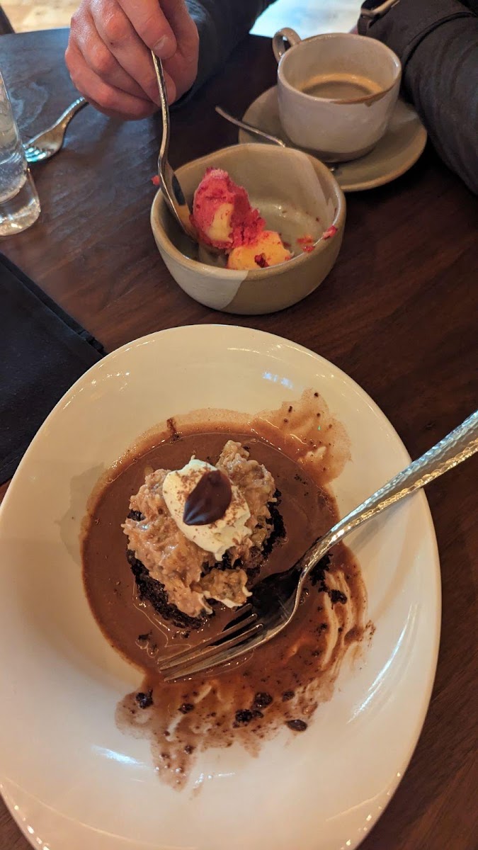 “ Went here twice during our Bandon stop on the roadtrip! The wines were superb. Service was exceptional. My traveling companion did not enjoy their chicken, but appreciated the two desserts he had - raspberry chocolate mousse & mint chocolate ice cream. I enjoyed all my items, but thought the lemon meringue wanting for zest & the meringue had too much grit. ”